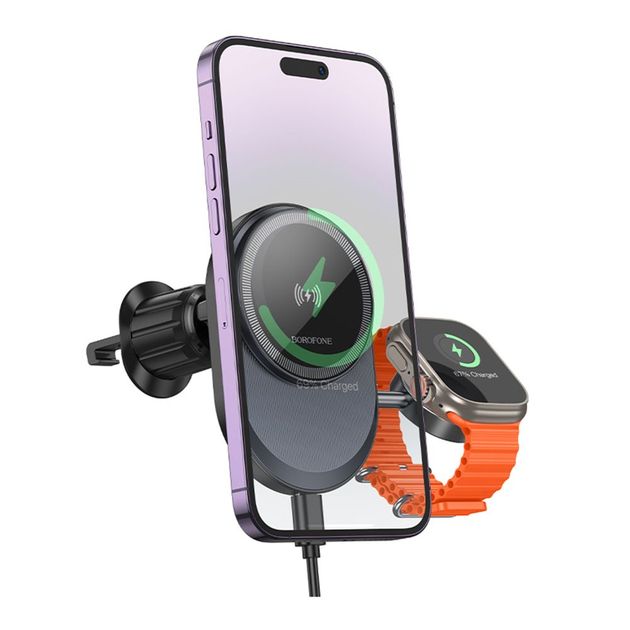Автотримач Borofone BH219 Fine 2-in-1 Magnetic Wireless 15W Чорний - Функціональний