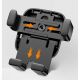 - Смартфон встановлюється у тримач одним рухом – його вага автоматично активує бічні затискачі, забезпечуючи надійну фіксацію.