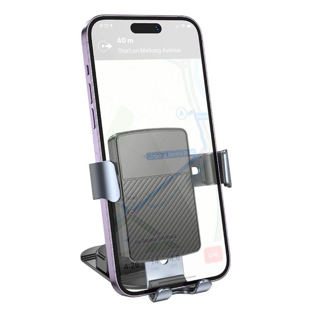 - Під час встановлення смартфона під його вагою автоматично спрацьовують бічні затискачі, щільно фіксуючи пристрій. Це забезпечує швидке встановлення та зняття телефону однією рукою, що зручно та безпечно.