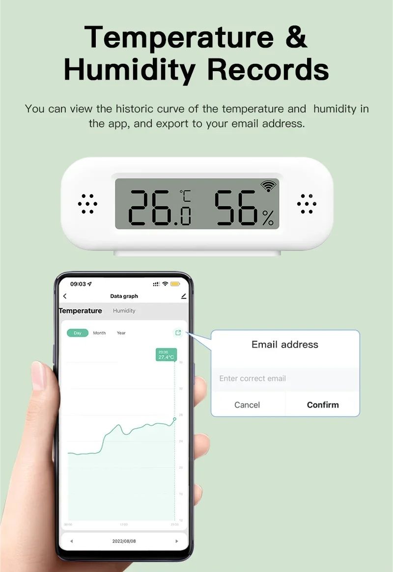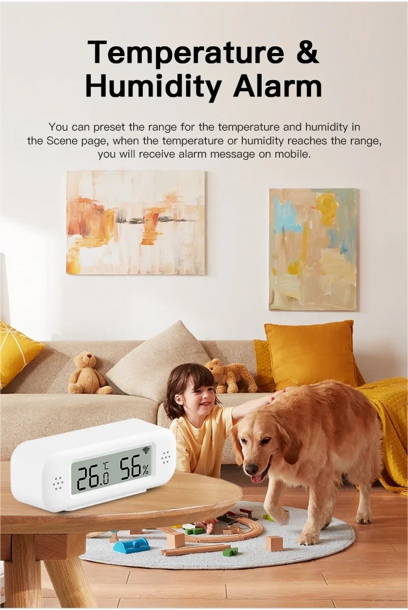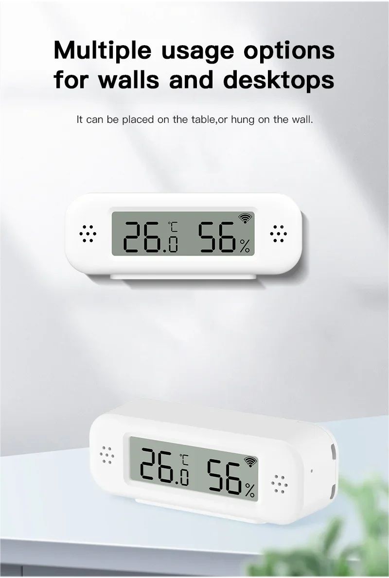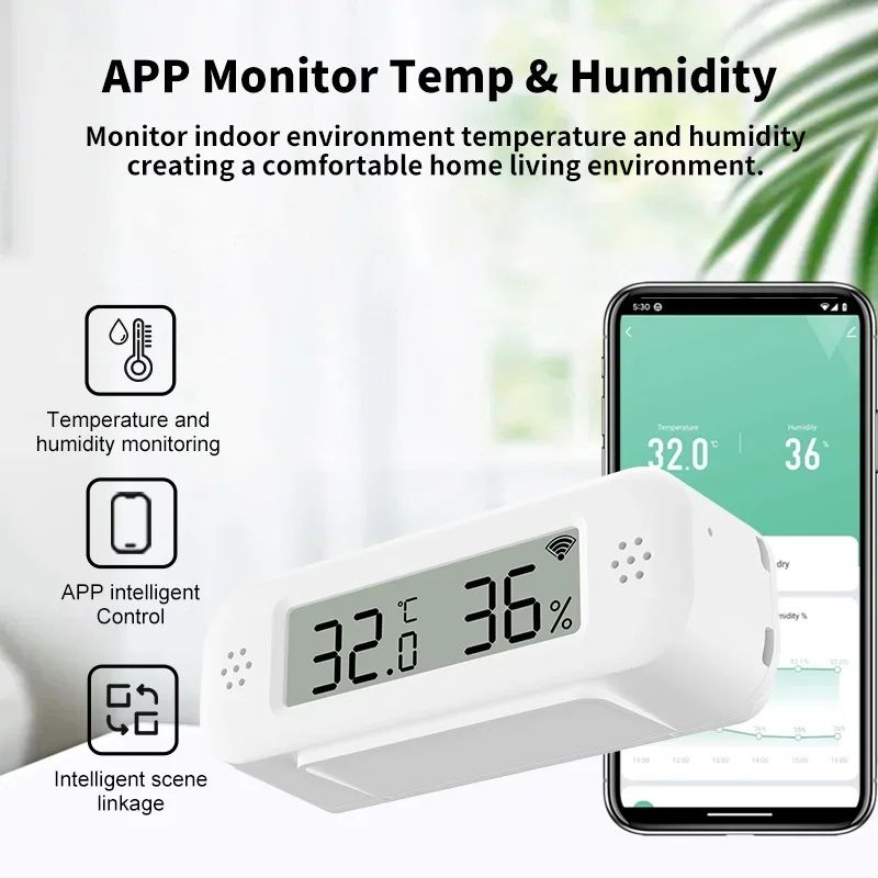Розумний Wi-Fi датчик температури і вологості TH02 Pro — це компактний і високоточний пристрій для моніторингу кліматичних умов у приміщенні. Він забезпечує точне вимірювання, відображення даних на екрані та передачу показань у реальному часі в мобільний додаток Tuya Smart або Smart Life. Завдяки інтеграції з голосовими помічниками цей датчик стає ідеальною частиною розумного будинку.