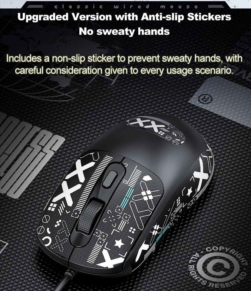 TWolf G580 sticker миша, ігрова, дротова, USB, 1000-1600DPI, 1.5m, Чорний