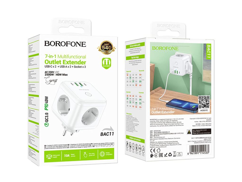 Подовжувач мережевий Borofone BAC11, PD40W, 2C2A, EU, білий
