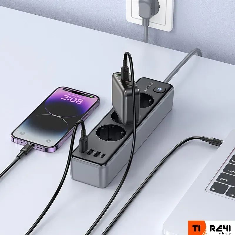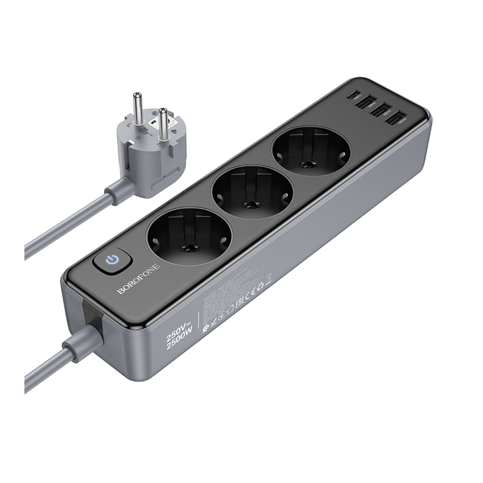 Borofone BAC8 — це багатофункціональний мережевий подовжувач, призначений для безпечного підключення побутової та офісної техніки, а також одночасної зарядки мобільних пристроїв. Він відрізняється сучасним дизайном, продуманою конструкцією та високими стандартами безпеки. Ідеально підійде як для дому, так і для офісу, а також в майстерні або на виїзних заходах. Він дозволяє зручно розподілити живлення між кількома пристроями, забезпечуючи безпеку та зручність використання.