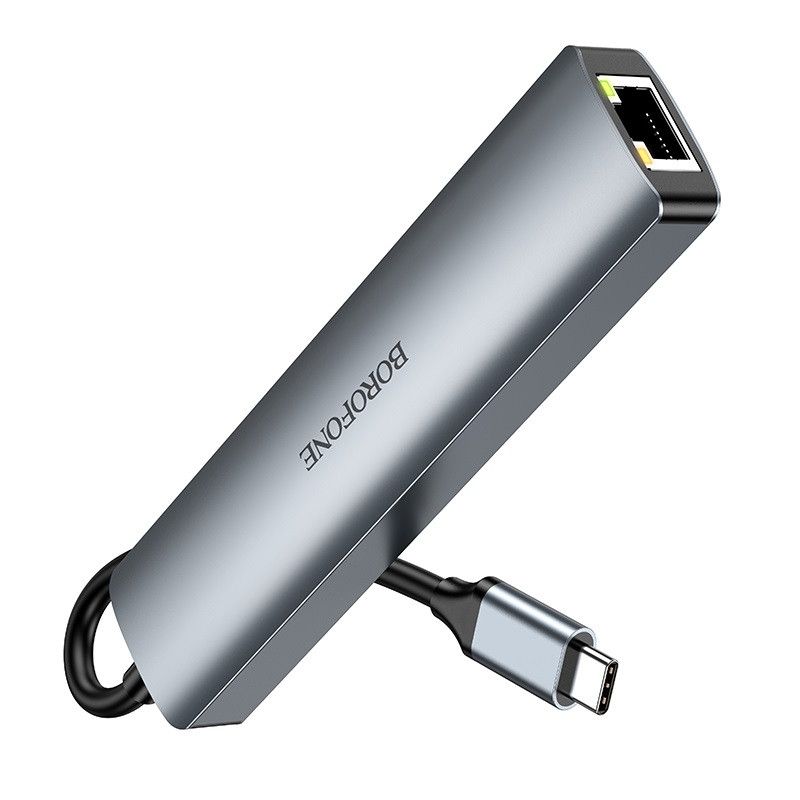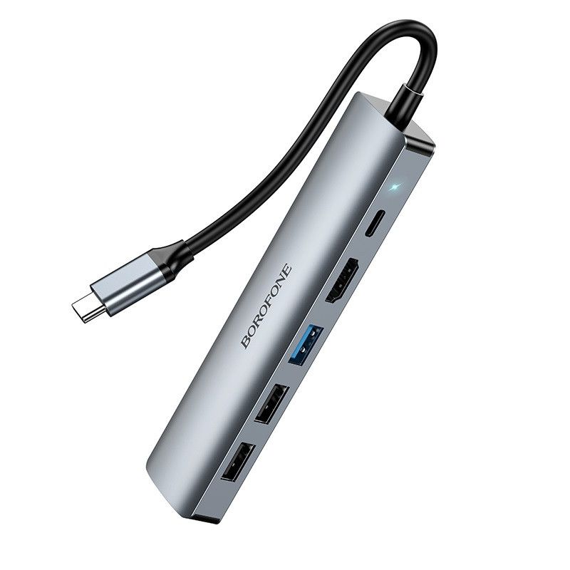 USB-хаб Borofone DH16 (6-в-1: Type-C to HDMI, PD, USB3.0, USB2.0х2, RJ45, довжина 0.15M) Сірий