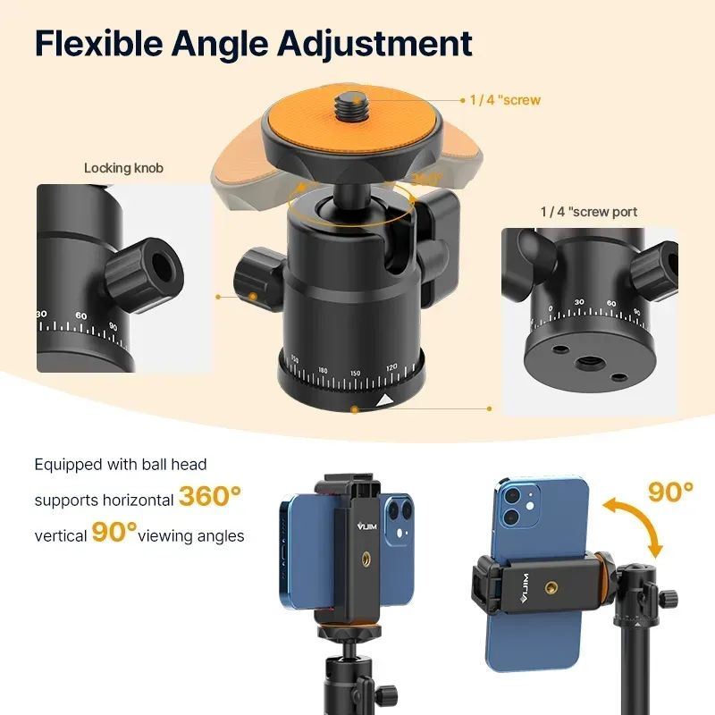 - Підходить для смартфонів, екшн-камер, відеосвітла, проекторів та іншого обладнання з кріпленням 1/4 дюйми.