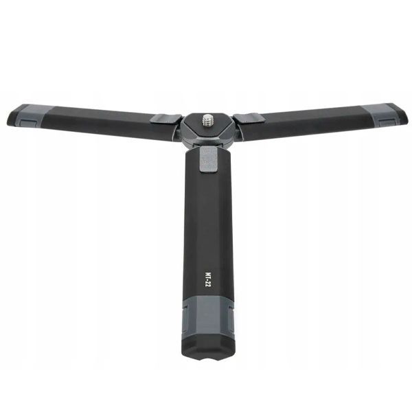 Ulanzi MT-22 — це міцний та компактний металевий міні-штатив, призначений для встановлення дзеркальних, бездзеркальних, компактних та екшн-камер, а також смартфонів (при використанні адаптера). Він ідеально підходить для розміщення знімального обладнання на рівних поверхнях: столі, підлозі, полиці та інших.