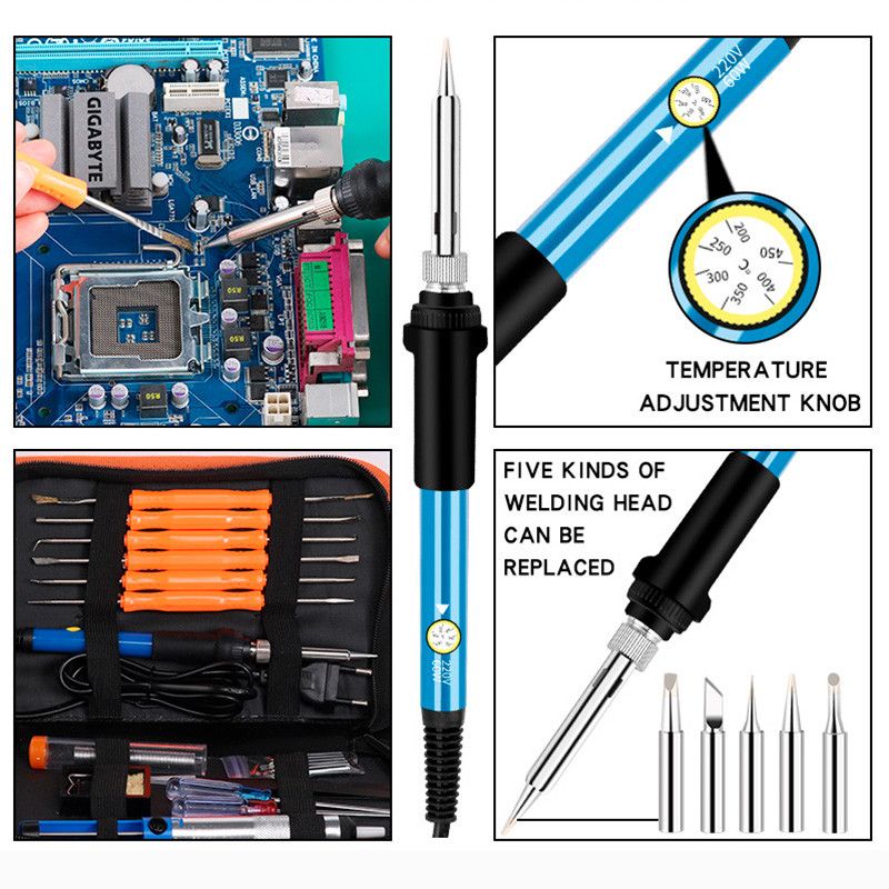 Паяльний набір у пеналі Aida A-806 (паяльник 60W, рег. t 200-450 гр C, жала 900M 6шт, інструм. та розх.)