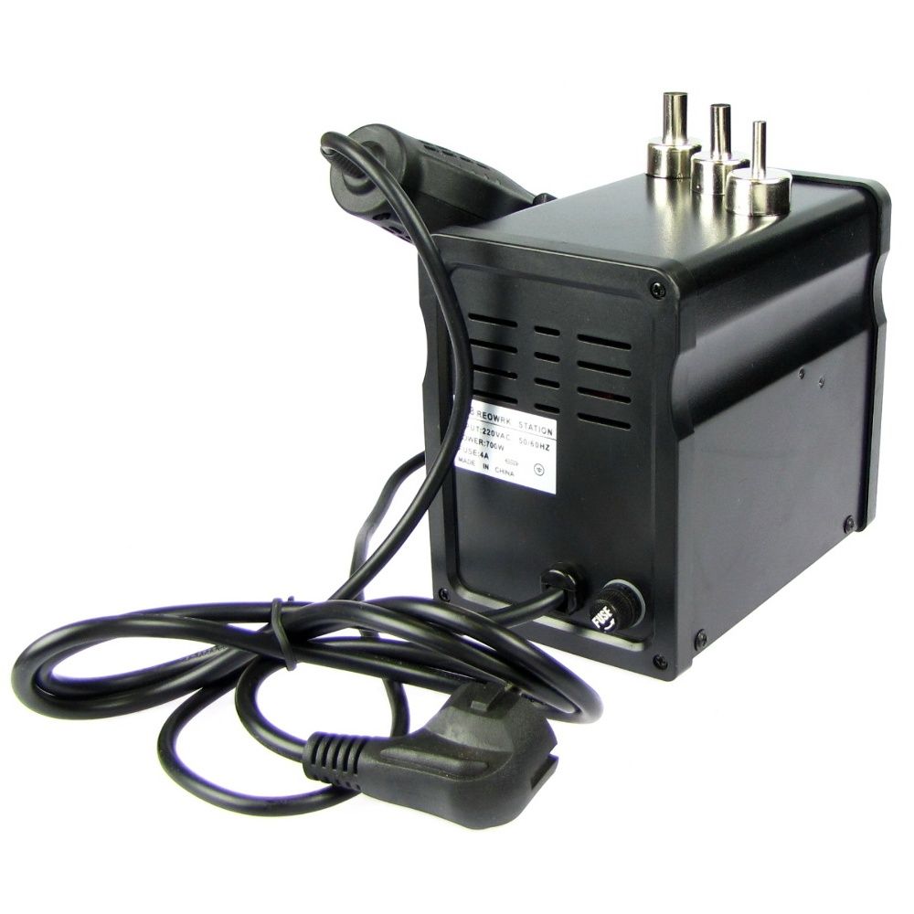 Наявність термофена дозволяє працювати з пристроями з поверхневим монтажем (SMD), а також із мікросхемами типів DIP, SIP, SOIC, QFP, LCC, PLCC, TSOP, SSOP, ZIP та BGA. Для точного напрямку потоку повітря використовуються змінні насадки, що забезпечує акуратне та безпечне нагрівання компонентів.