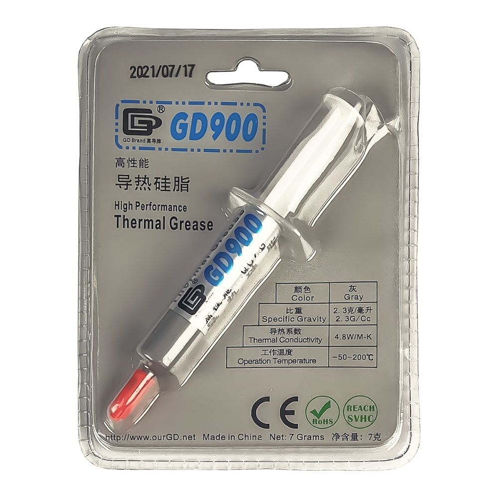 Термопаста GD900, 7г, теплопровідність 4.8 W/mK, щільність 2.3 г/см3, пластикова лопатка, напальчники (2 шт.)