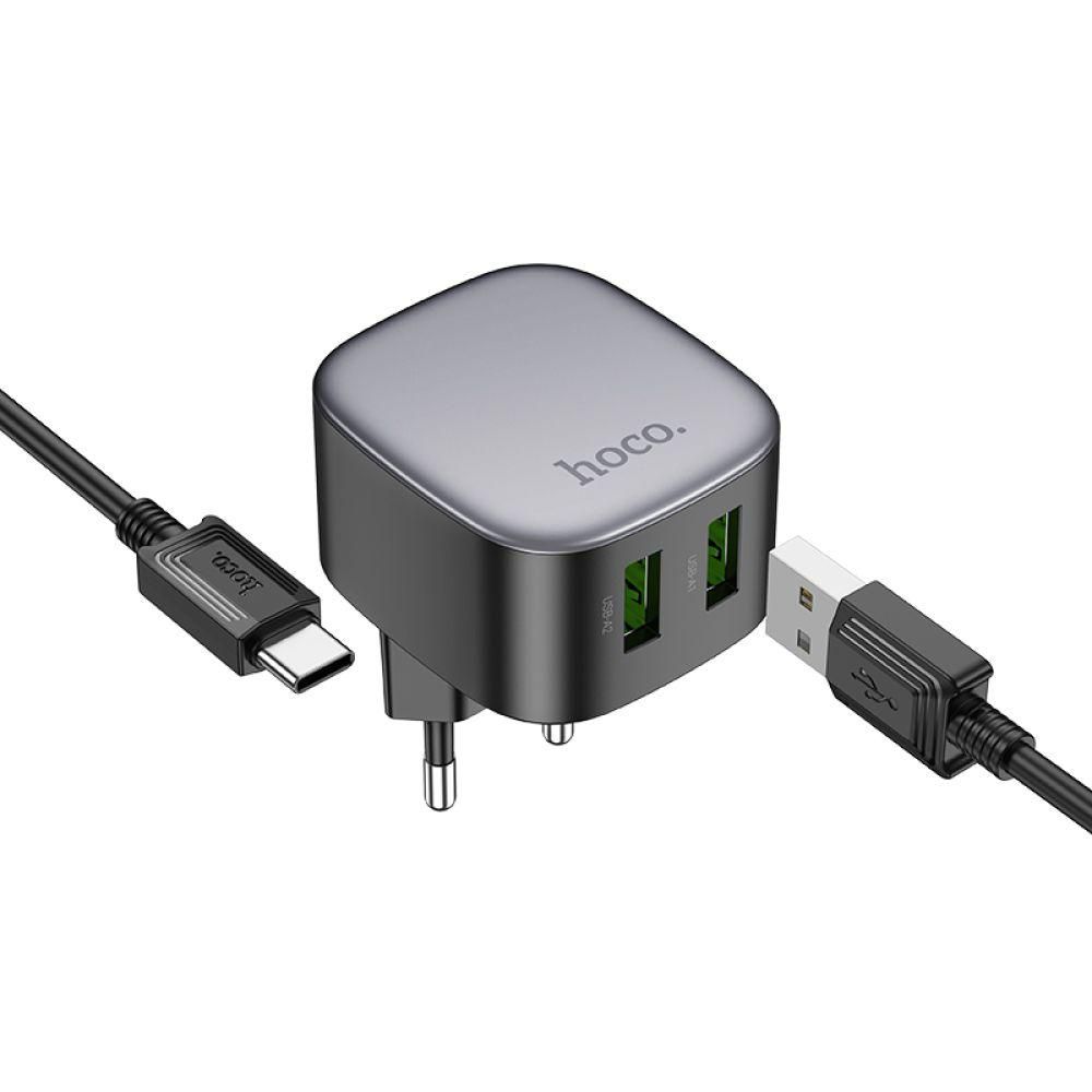 Зарядний пристрій Hoco CS34A, 2USB, QC 18W, USB to Type-C, Чорний
