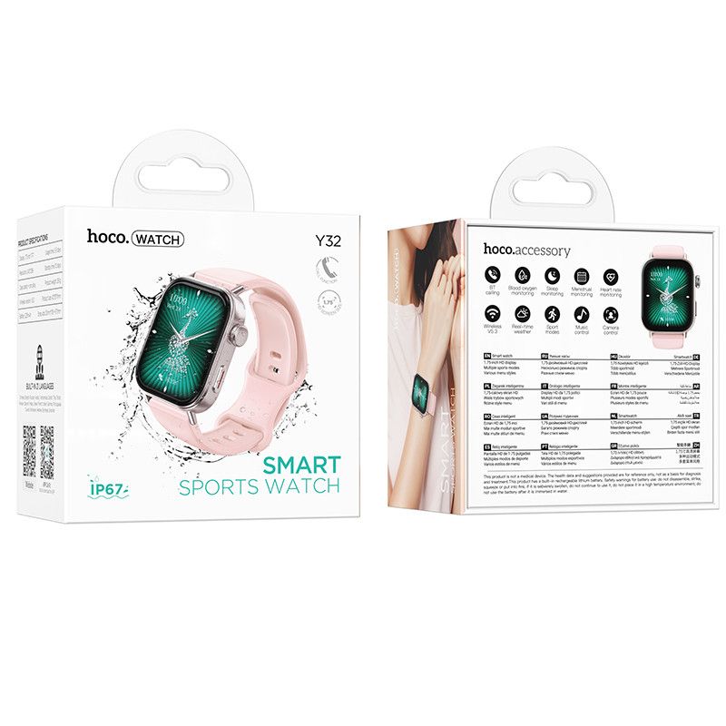 Смарт годинник Hoco Y32 з функцією дзвінка, BT5.3, IP67, 225mAh, pink