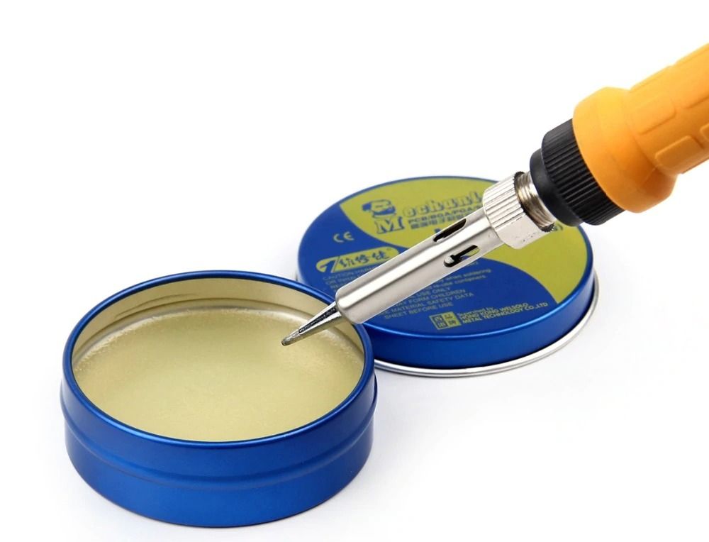 - Легко наноситься навіть на дрібні елементи, не розтікається і не засмічує місце паяння.