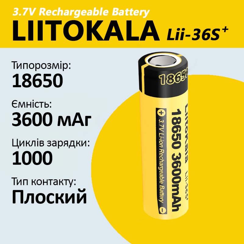 Акумулятор LiitoKala Lii-36S+, 18650, 10A, 3600mah, Original