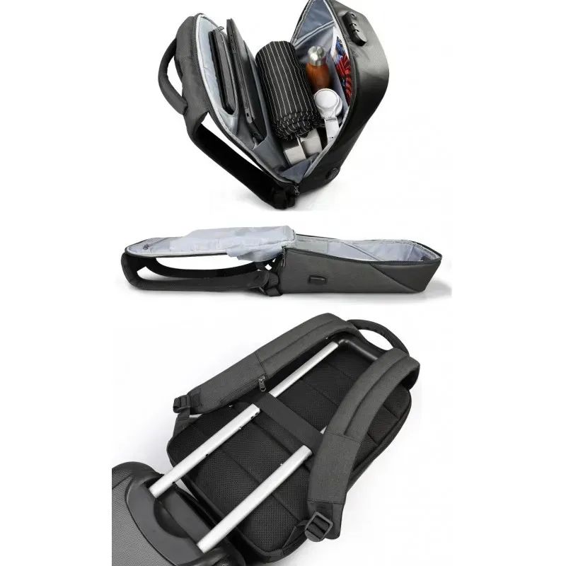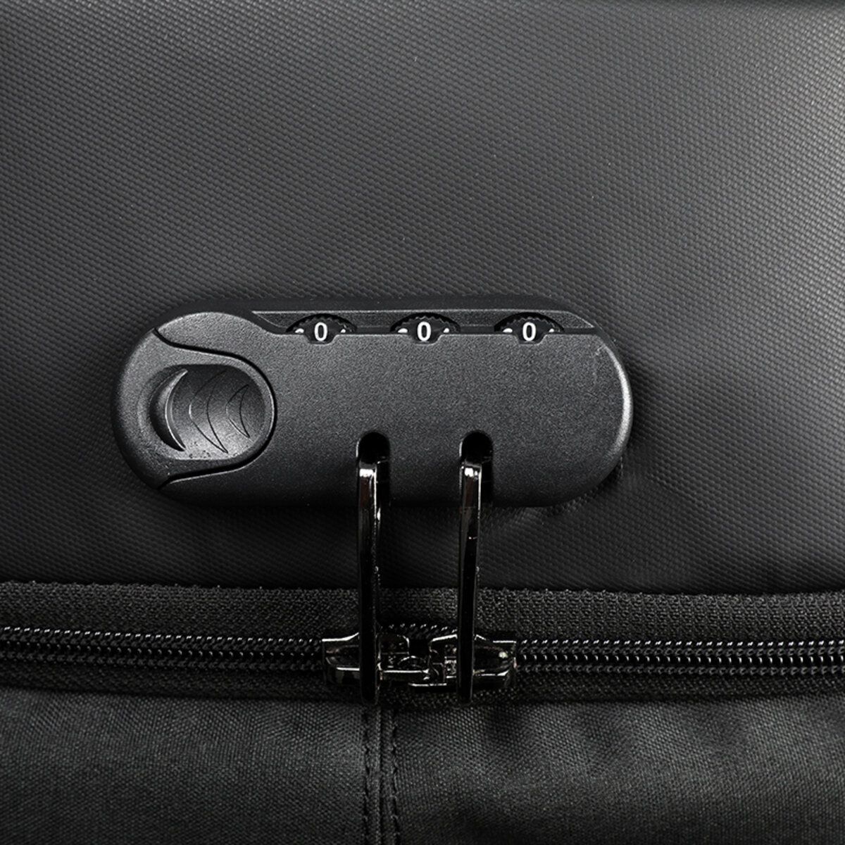 • Цей рюкзак виконаний в антизлодій-концепції — без зовнішніх кишень, із захищеними блискавками та вбудованим кодовим замком, який блокує основне відділення. Це забезпечує надійний захист від крадіжок і випадкового доступу.