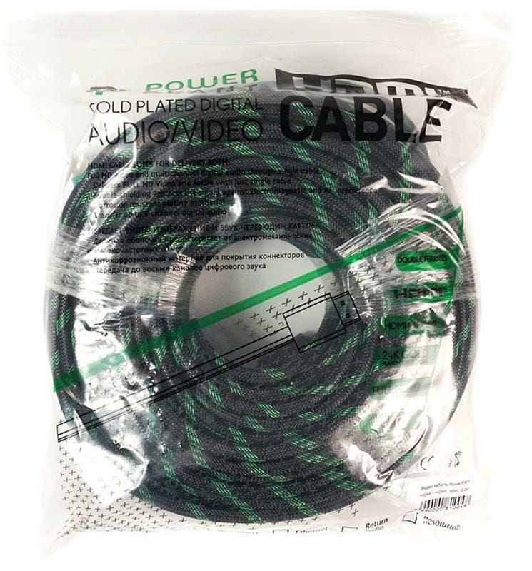 Кабель відео PowerPlant HDMI - HDMI, 30м, позолочені конектори, 2.0V, подвійні ферити, Highspeed