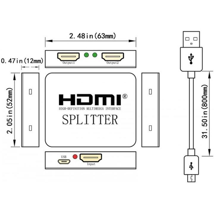 Цей спліттер призначений для одночасного виведення сигналу з одного HDMI-джерела на два дисплеї — телевізора, монітора або проектора. Пристрій підтримує роздільну здатність до 4K (3840×2160) та Full HD 1080p, а також повноформатне 3D-відео та багатоканальний цифровий звук, що робить його чудовим рішенням для дому, офісу, відеостін, презентацій та систем цифрової реклами.