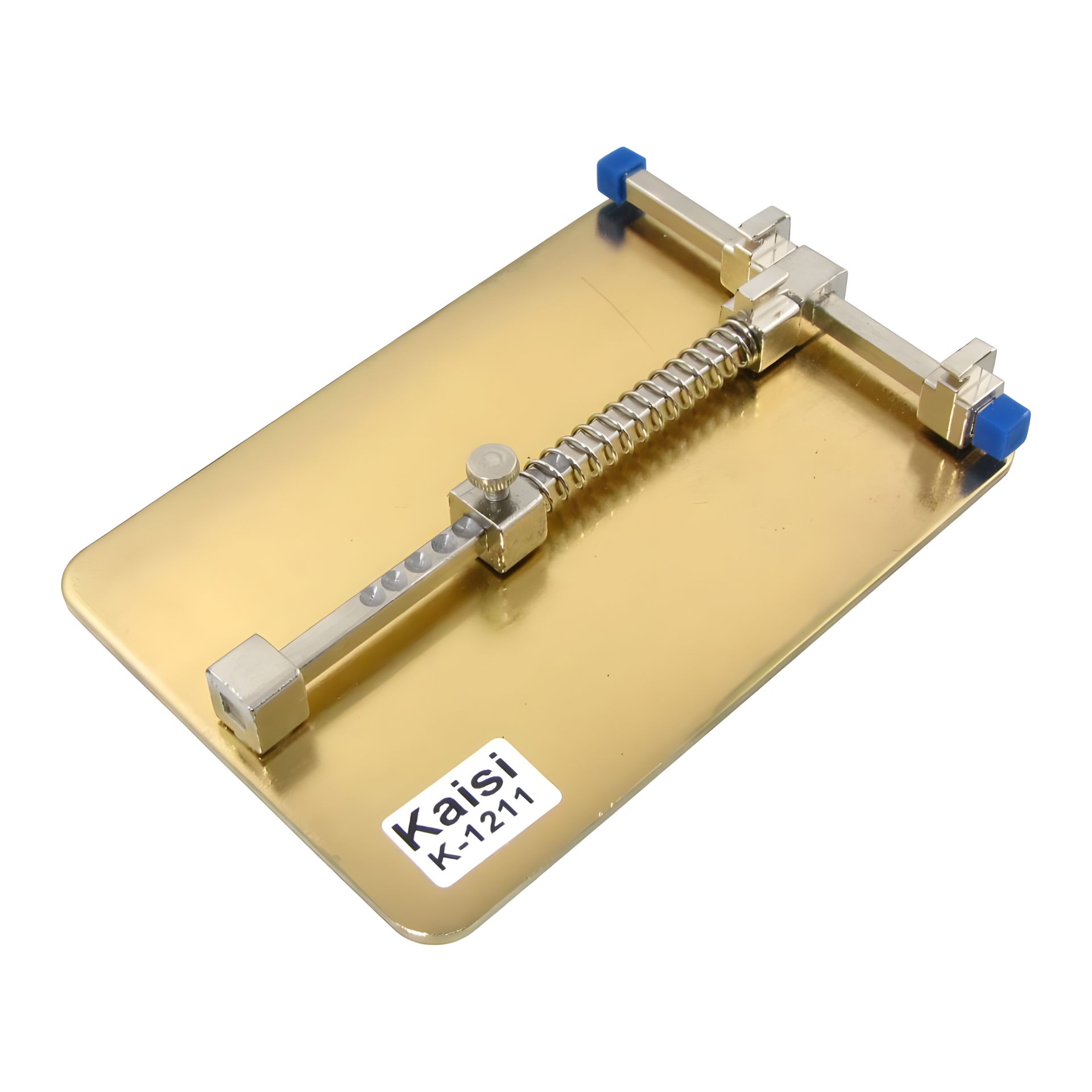 Універсальний монтажний столик Aida A-1211 призначений для надійної фіксації друкованих плат під час паяння, прогрівання феном, реболлінгу та інших ремонтних операцій. Пружинний притискний механізм та кілька рухомих упорів дозволяють швидко закріпити плату потрібного розміру та забезпечити до неї вільний доступ з усіх боків, що особливо зручно під час ремонту смартфонів та іншої компактної електроніки.