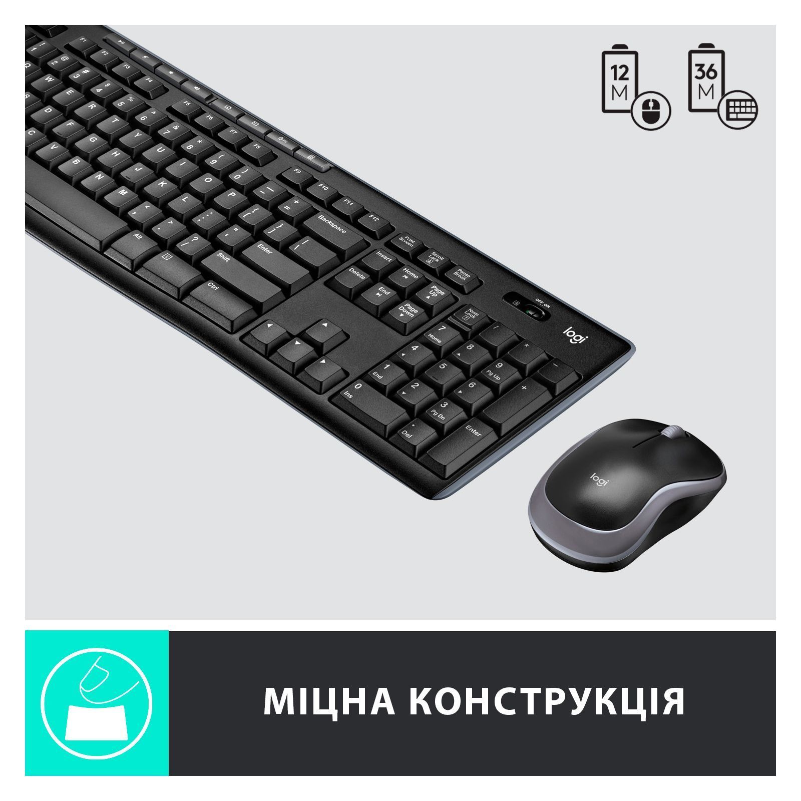 - Енергоефективна конструкція дозволяє клавіатурі працювати до 36 місяців, а миші — до 12 місяців без заміни елементів живлення. Наявність вимикачів живлення допомагає додатково заощаджувати заряд батарейок.