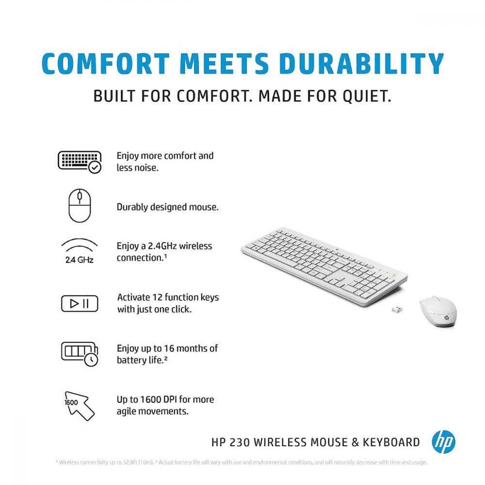 HP 230 WL — це практичний бездротовий комплект із клавіатури та миші, створений для комфортної повсякденної роботи вдома або в офісі. Мінімалістичний дизайн, тихий хід клавіш та надійне бездротове з'єднання роблять цей набір відмінним вибором для користувачів, що цінують зручність, стабільність та акуратний робочий простір без зайвих дротів.