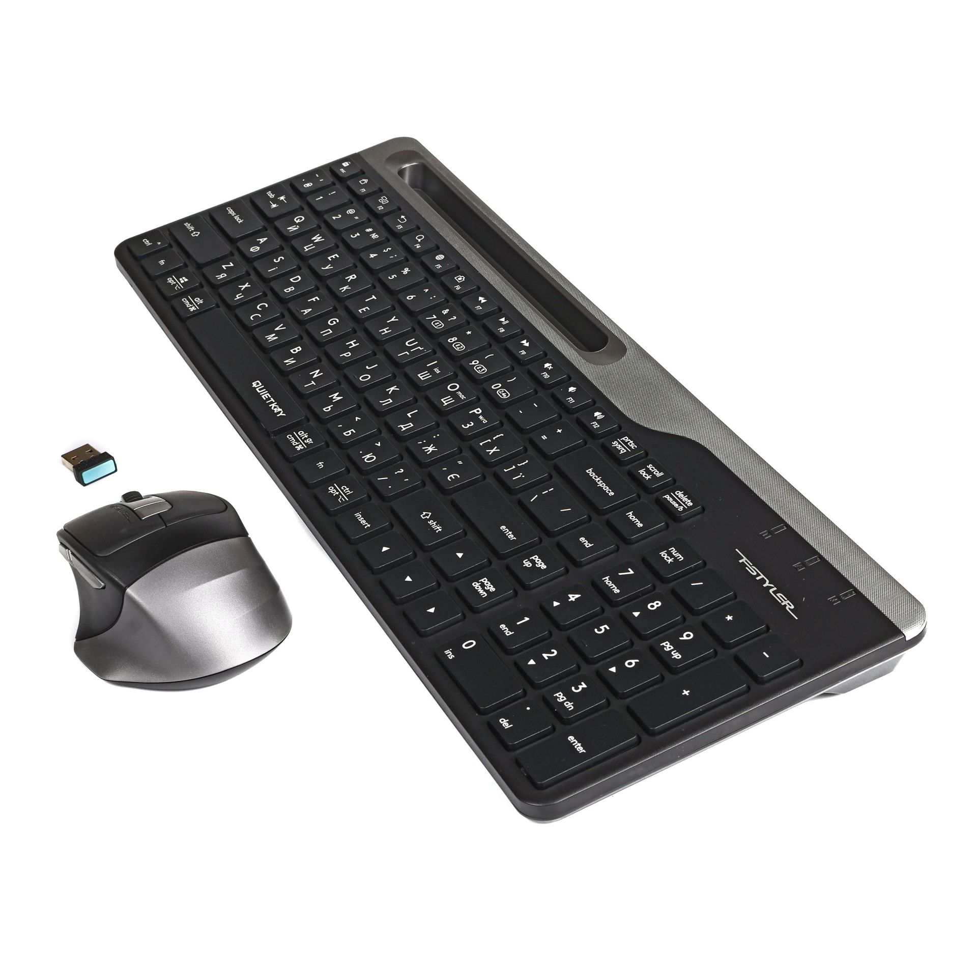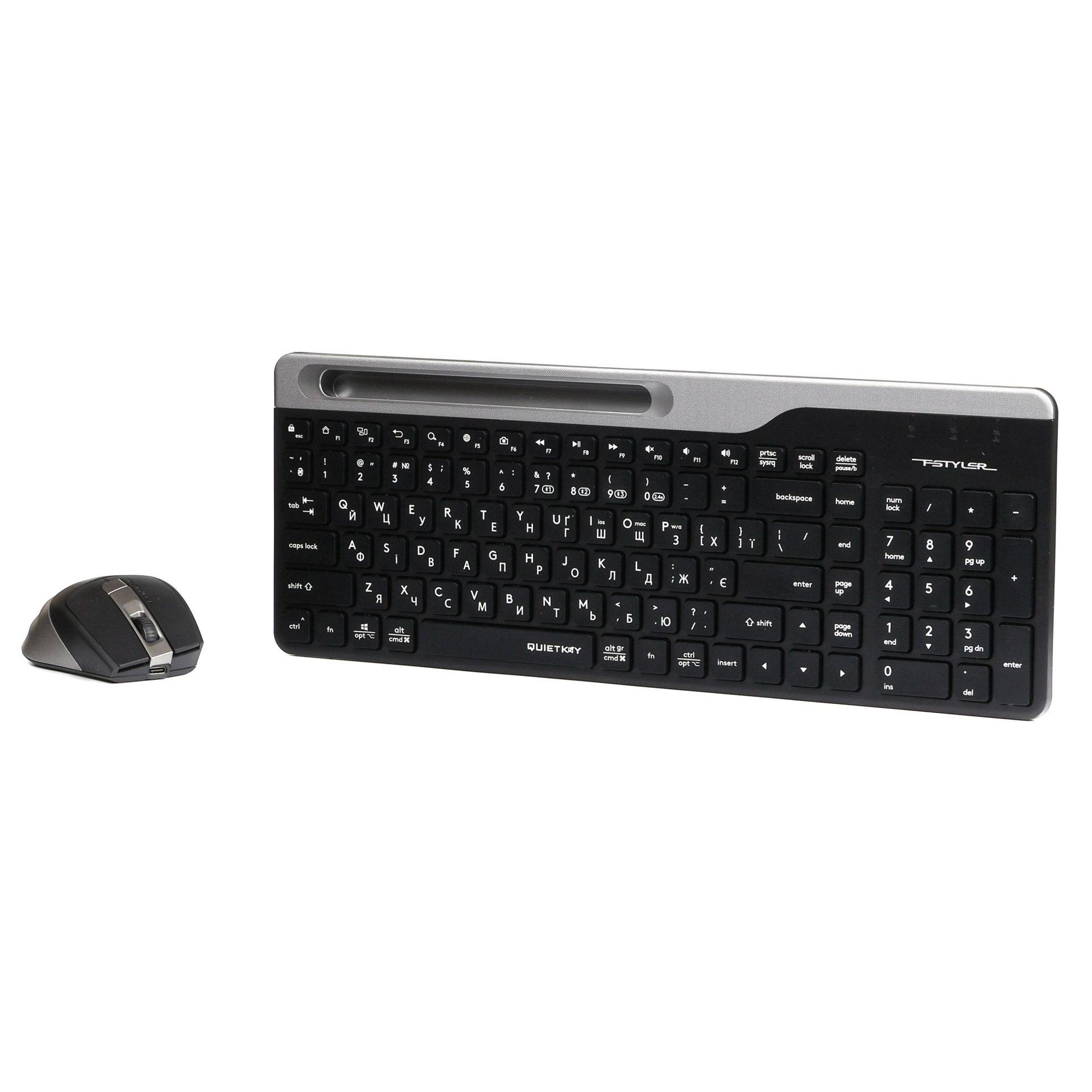 A4Tech Fstyler FB2535C — це універсальний бездротовий комплект клавіатури та миші, розроблений для комфортної роботи відразу з кількома пристроями. Він ідеально підходить для користувачів, які працюють одночасно з ПК, ноутбуками, планшетами та смартфонами на платформах Windows, Mac, Chrome OS, Android, iPad та iPhone. Підтримка Bluetooth та радіоканалу 2.4 ГГц, компактна клавіатура з підставкою для смартфона та функціональна миша роблять цей набір чудовим рішенням для дому, офісу та поїздок.