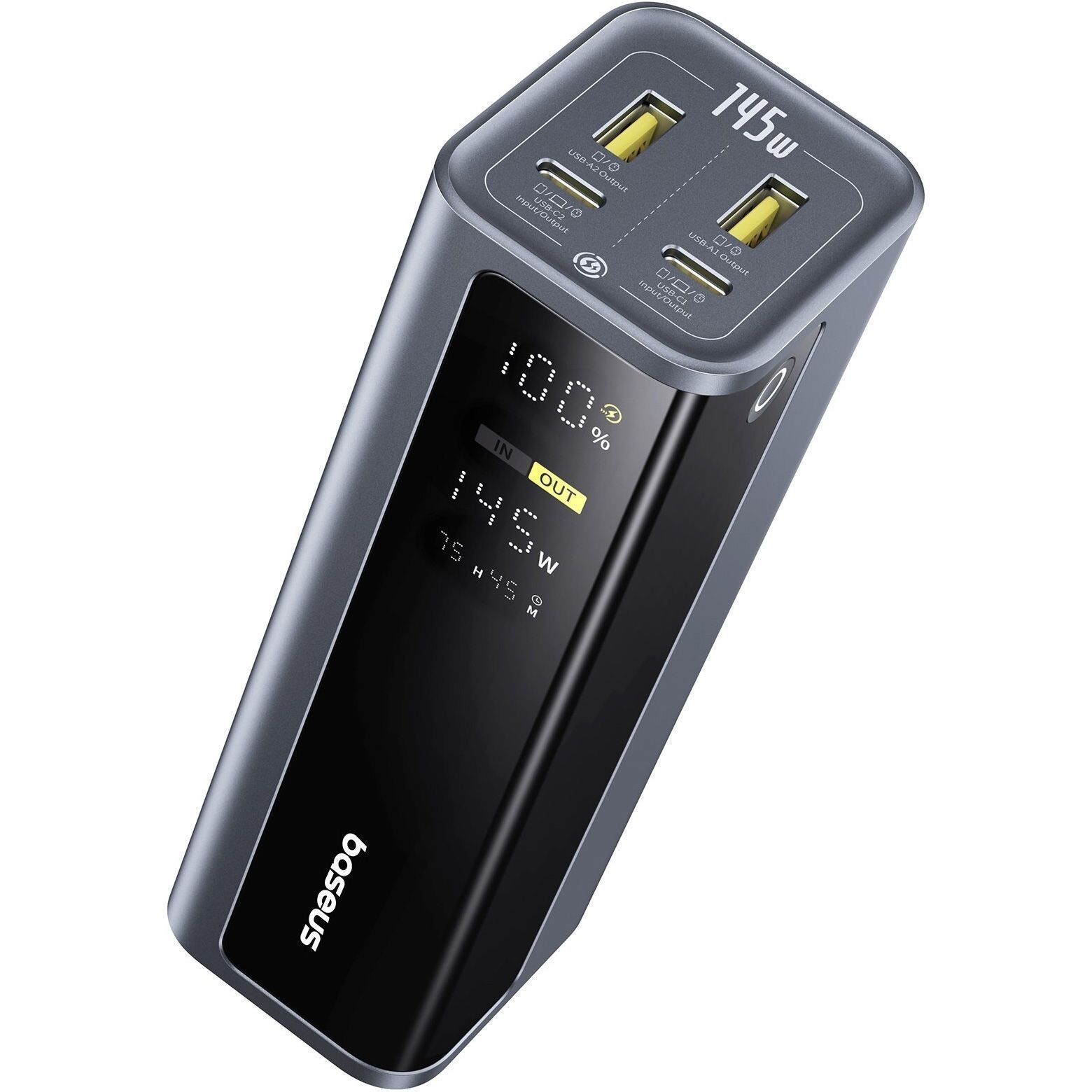 - Цей повербанк здатний заряджати енергоємні пристрої, включаючи ноутбуки та ігрові консолі. Один порт Type-C забезпечує до 100 Вт, а при одночасному використанні двох Type-C — до 145 Вт сумарно.