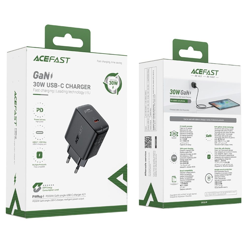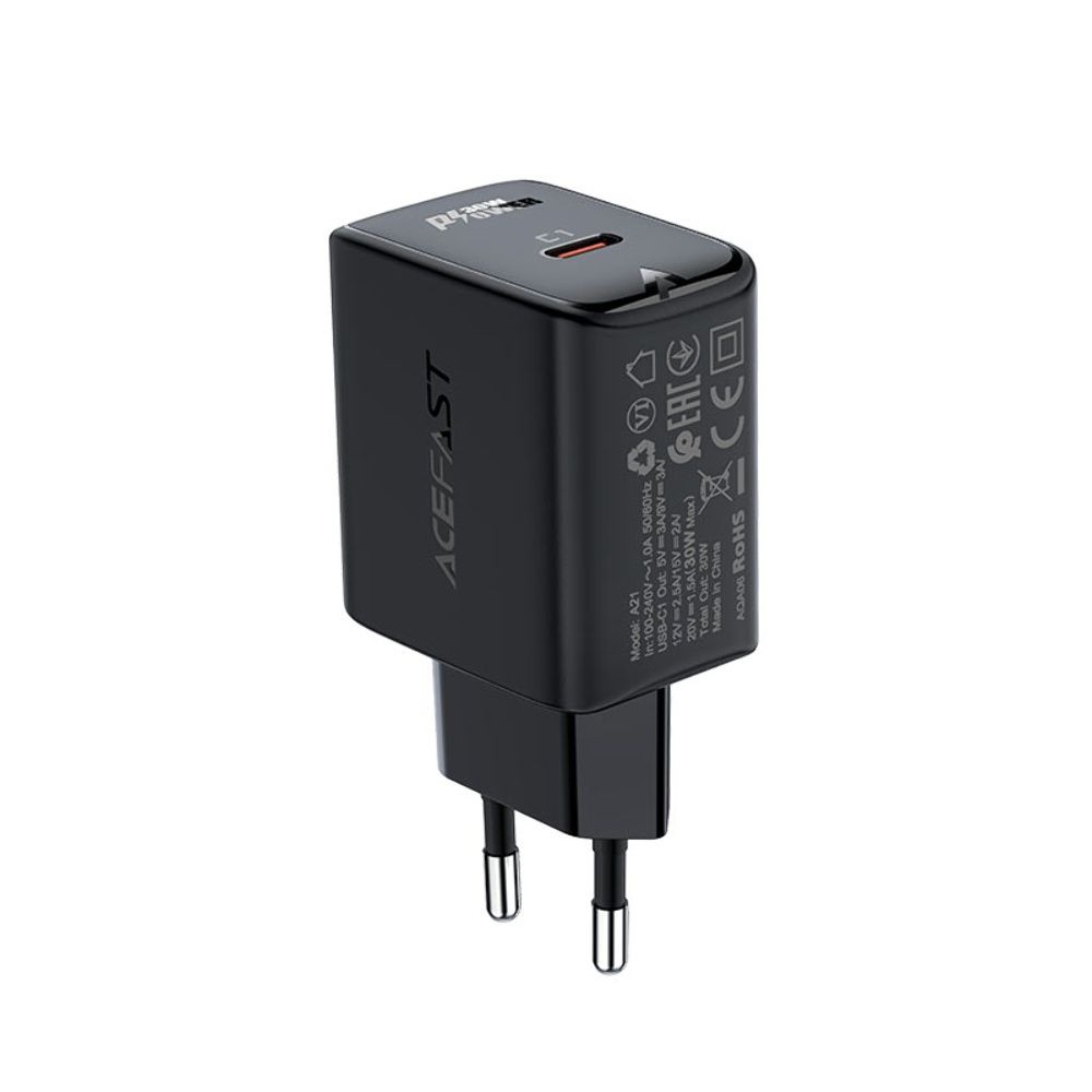 Мережевий зарядний пристрій Acefast A21, Type-C, QC, PD 30W, чорний