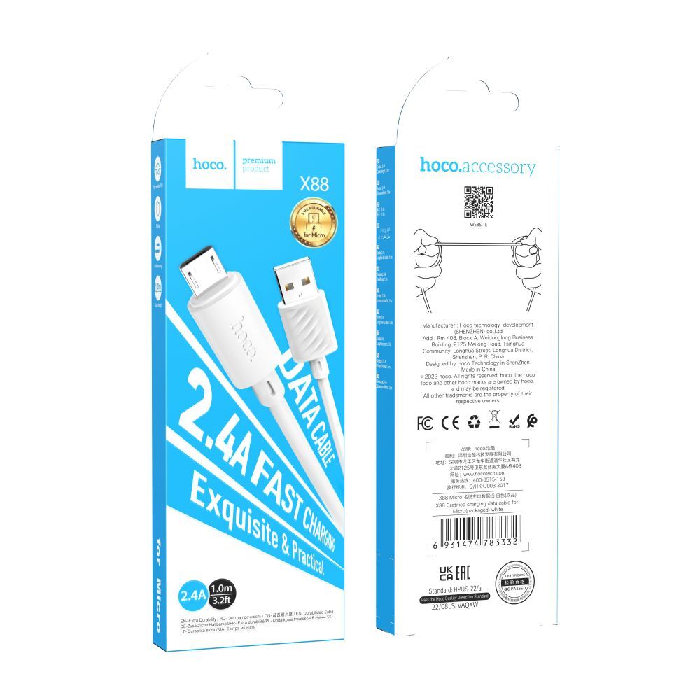 USB Hoco X88 Gratified Micro 2.4A білий