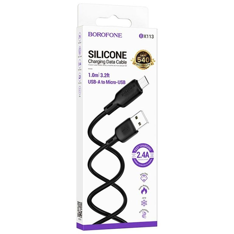 USB Borofone BX113 Silicone Micro 2.4A Black
