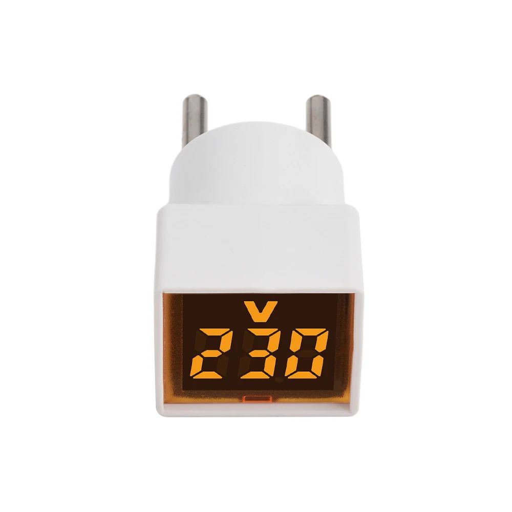 Міні вольтметр у розетку, квадратний, EU LED YELLOW