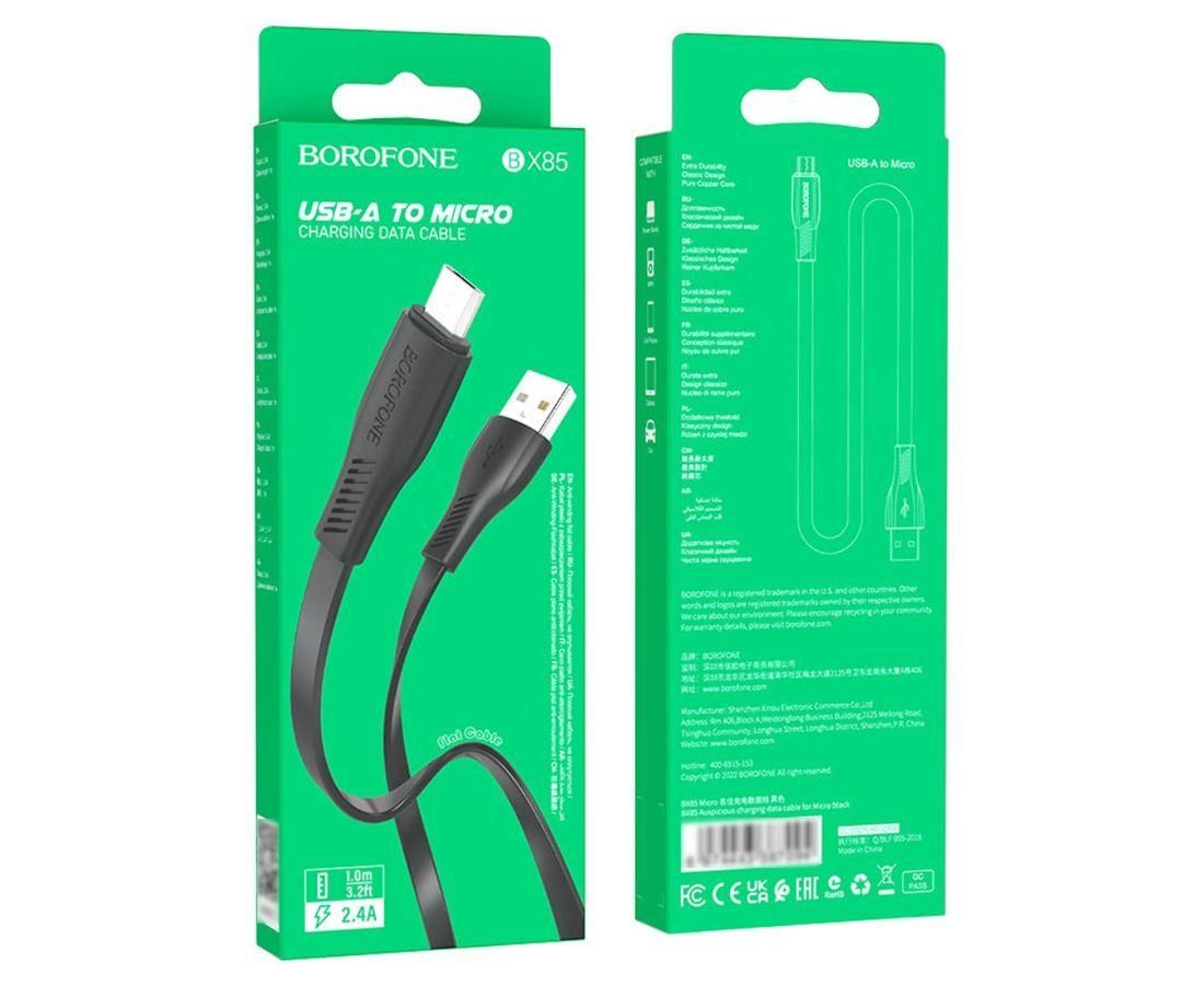 Кабель Borofone BX85 USB to MicroUSB – це надійний та зручний аксесуар для заряджання та передачі даних ваших пристроїв з роз'ємом MicroUSB. Цей кабель поєднує довговічність, якість матеріалів та сучасний дизайн, забезпечуючи стабільну роботу та комфортне використання.