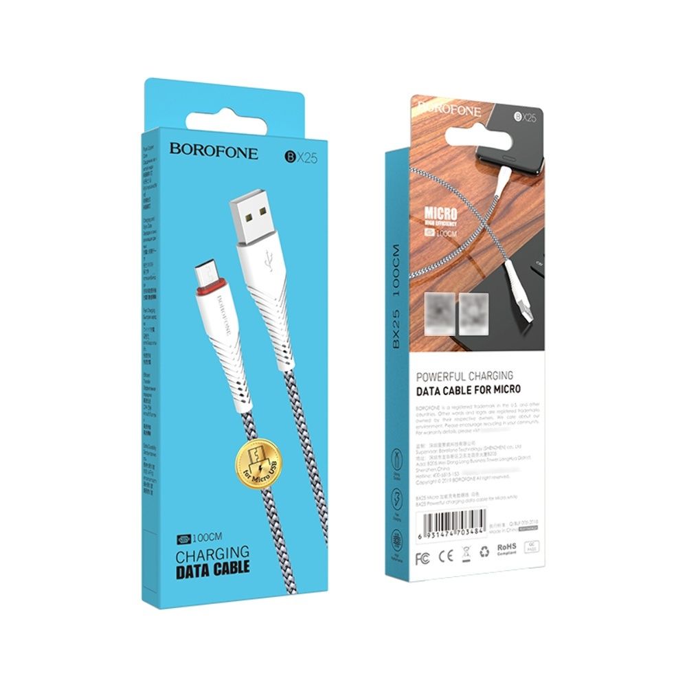 Кабель Borofone BX25 USB to MicroUSB, 1m, білий