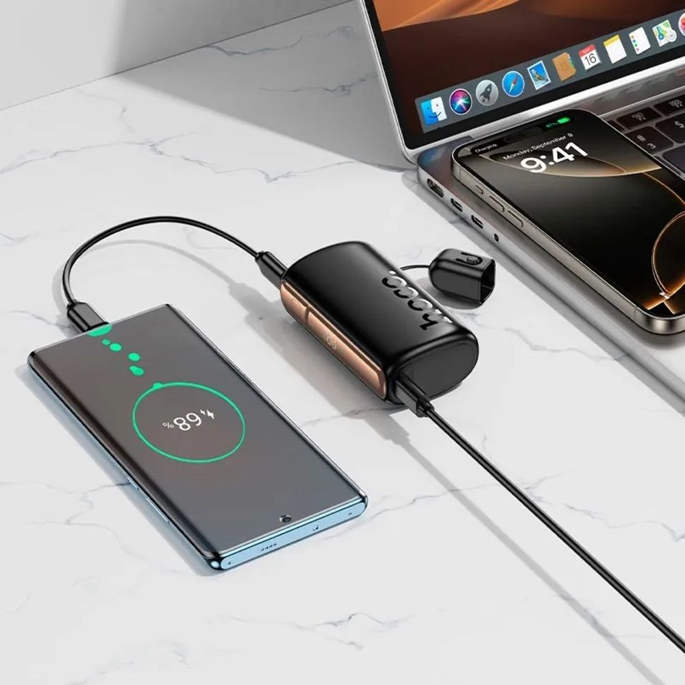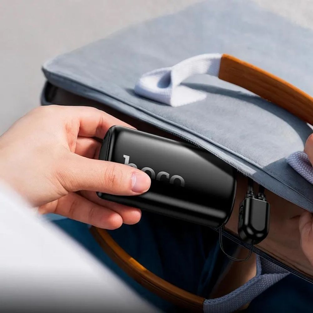 HOCO Q50 - це компактний і потужний зовнішній акумулятор з ємністю 10000 мАг, призначений для швидкої та безпечної зарядки смартфонів, навушників та іншої мобільної електроніки. Модель підтримує сучасні протоколи швидкої зарядки та оснащена двонаправленим кабелем Type-C – Lightning, який зручно фіксується на ремінці корпусу.