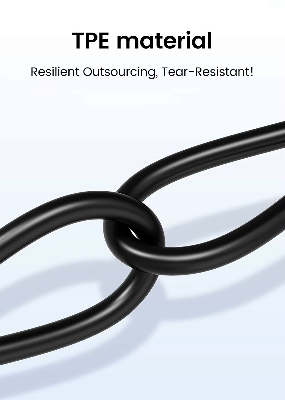 - Матеріал TPE захищає провід від механічних пошкоджень, скручування та вигинів у повсякденному використанні.