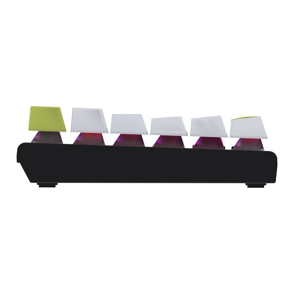- Ця клавіатура виконана у популярному форматі Tenkeyless без цифрового блоку. Така конструкція зменшує габарити пристрою та звільняє додатковий простір на робочому столі, що особливо важливо для геймерів, які використовують низьку чутливість миші.