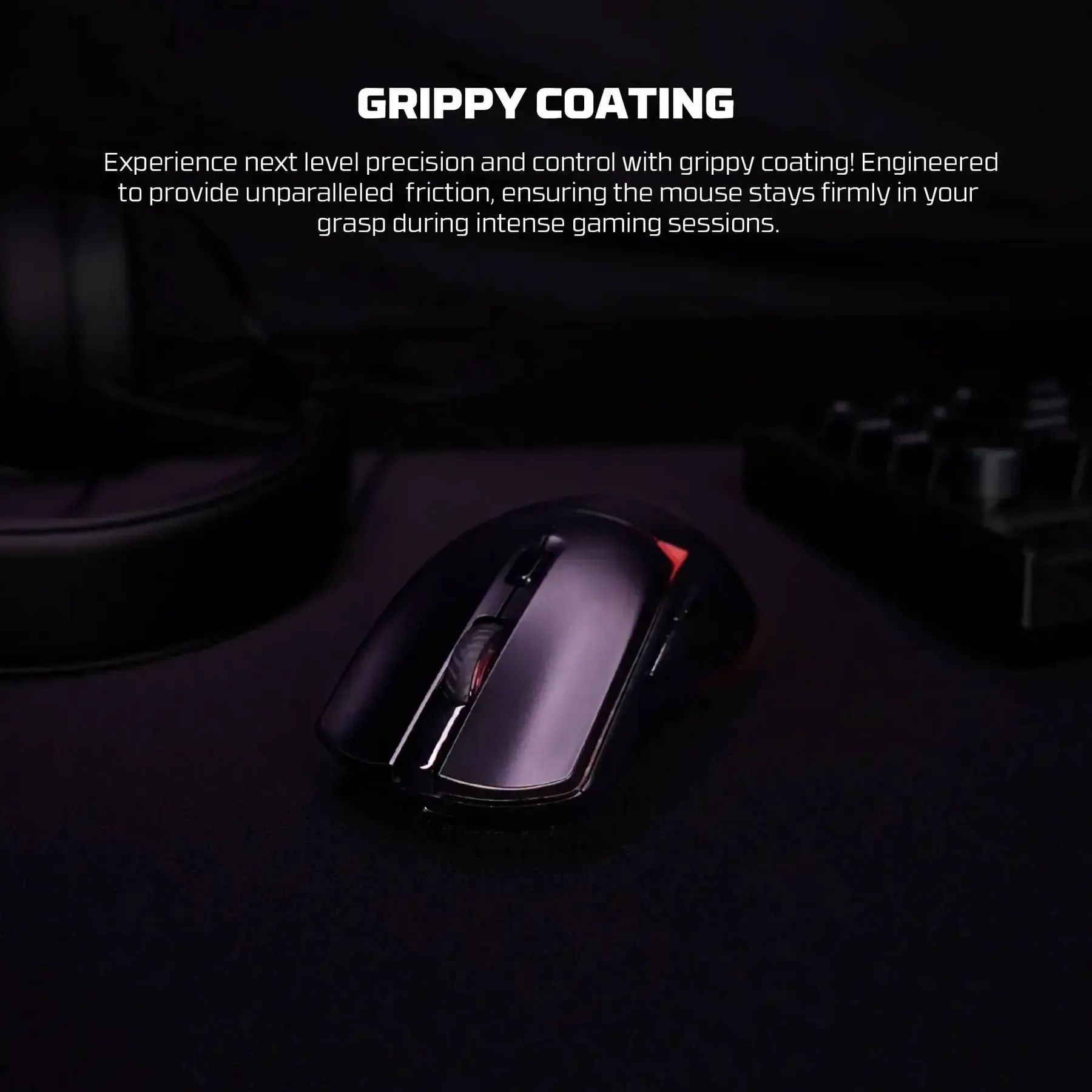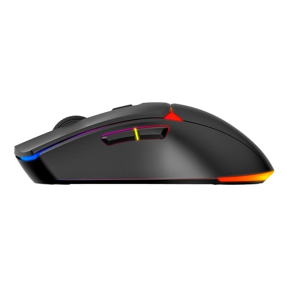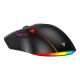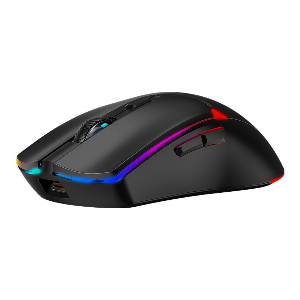Корпус виконаний із міцного ABS-пластику із захисним матовим UV-покриттям, яке стійке до зносу та приємно на дотик. Ергономічна симетрична форма робить мишу зручною для використання як правою, так і лівою рукою. Вбудований акумулятор підвищеної ємності забезпечує тривалу автономну роботу, а ARGB-підсвічування, що настроюється, з декількома ефектами надає пристрою яскравий ігровий стиль.