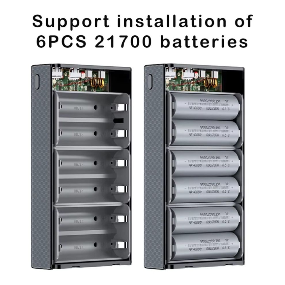 Корпус для складання повербанка Multi-Powerbank Q6 під акумулятори 21700 - це функціональний модульний корпус для самостійного складання потужного портативного акумулятора. Пристрій призначений для встановлення до шести літій-іонних акумуляторів формату 21700 (не входять до комплекту) і дозволяє створити високопродуктивний повербанк із підтримкою сучасних протоколів швидкого заряджання.