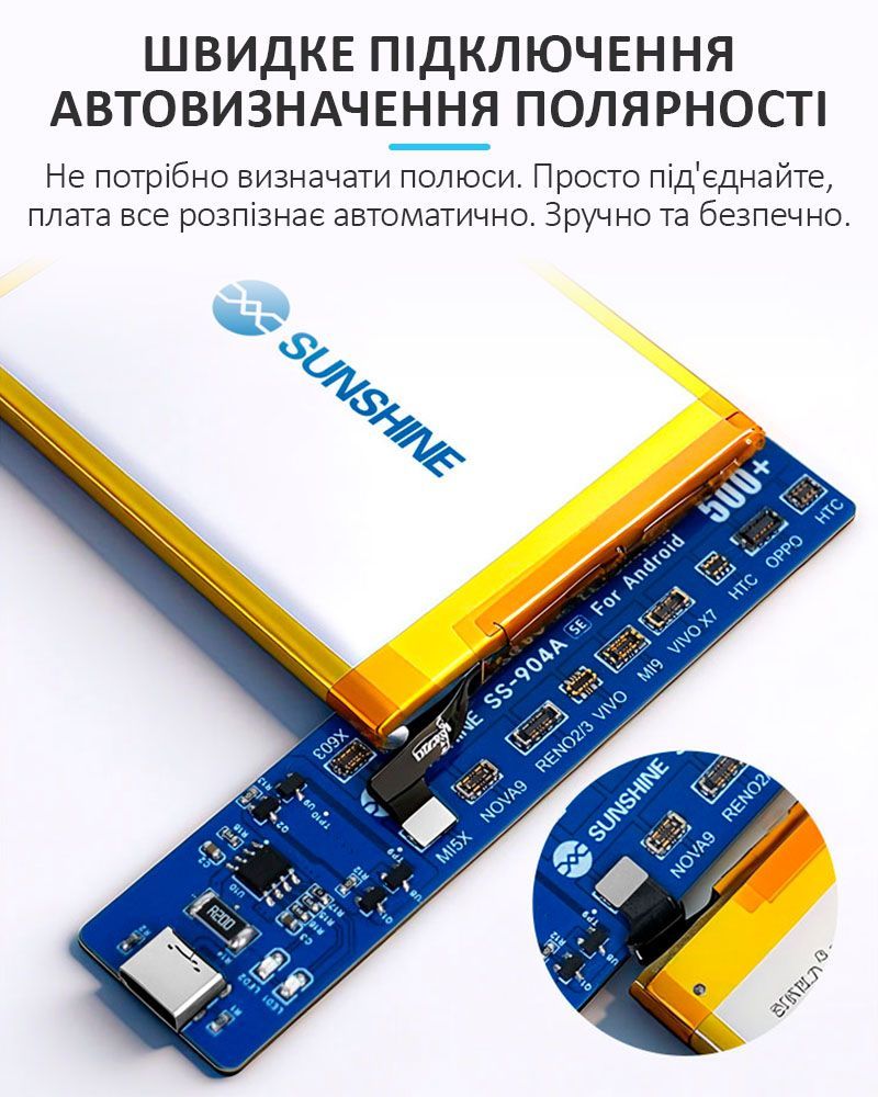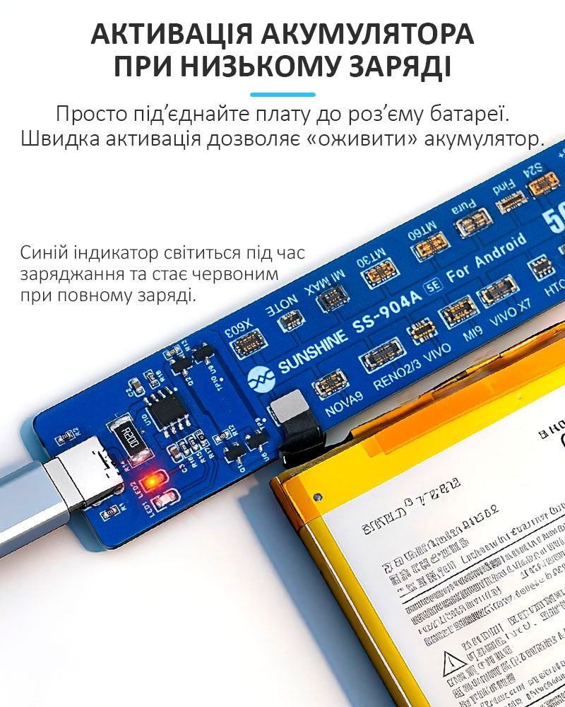 Активатор акумуляторів SUNSHINE SS-904A SE для Android / Samsung, Xiaomi, Huawei, Oppo, Vivo