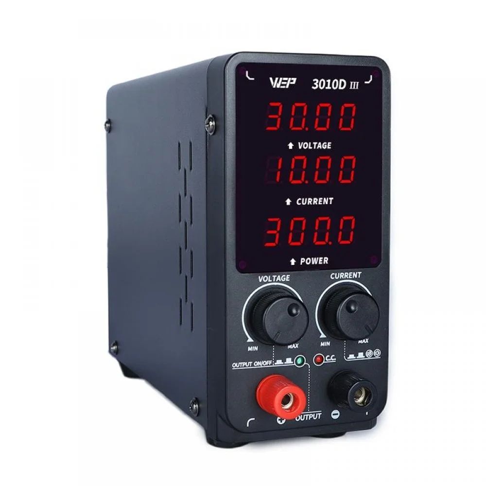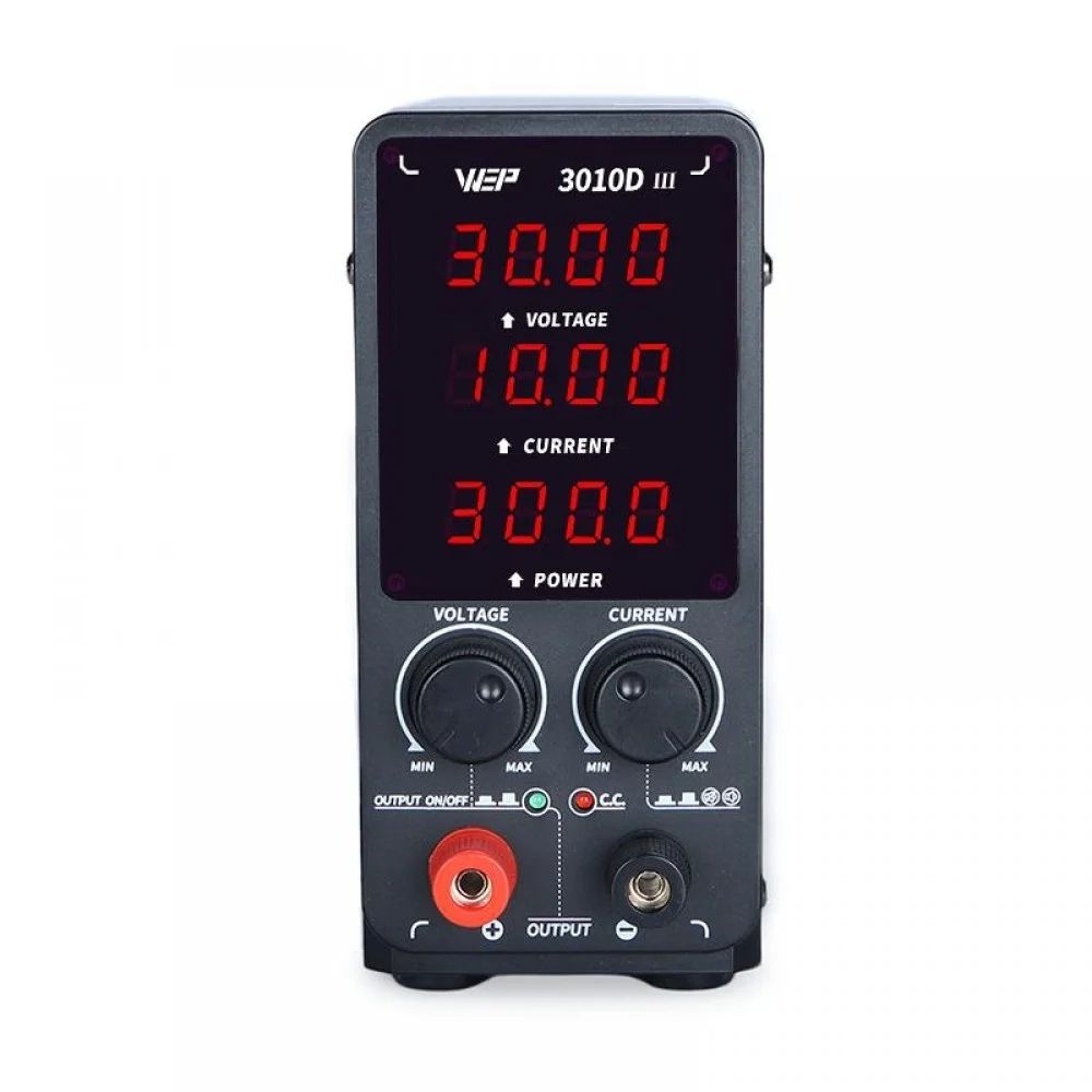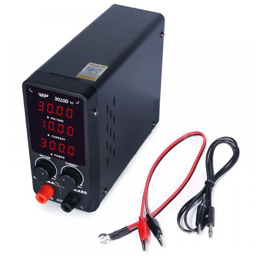 WEP 3010D-III - це високоточне імпульсне джерело живлення з цифровою індикацією напруги, струму та потужності, яке поєднує компактний розмір, високу потужність та надійні системи захисту. Завдяки широкому діапазону регулювання та зручному управлінню пристрій ідеально підходить для ремонту, тестування та обслуговування різної електроніки.