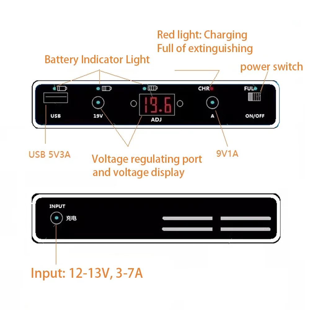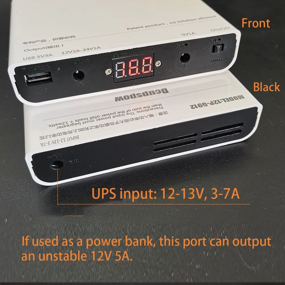 ДБЖ DIY 36W під АКБ 12x18650x3400mAh Max (до 40800mAh/148Wh) з дисплеєм, Out: 1xUSB 5V3A 2xDC 5.5*2.1/2.5mm 9V1A/12V3A, In: WHITE (Без АКБ, кабелів та БП)