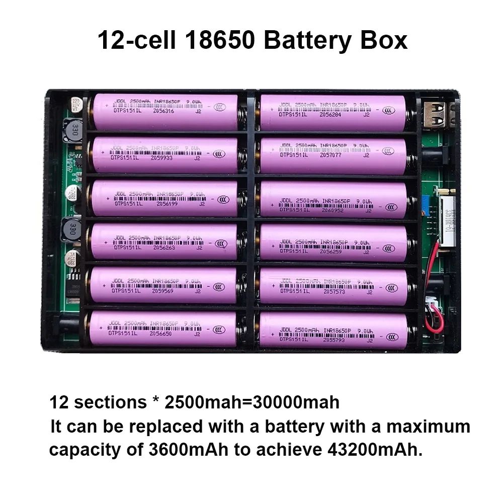 - Формат акумуляторів: 12×18650 (не входять до комплекту)