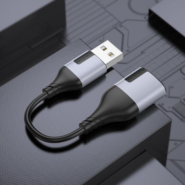 BOROFONE BV19 Creator 2-in-1 – це компактний та легкий аудіоадаптер, який дозволяє одночасно підключити навушники та мікрофон до ноутбука або планшета через USB-роз'єм.