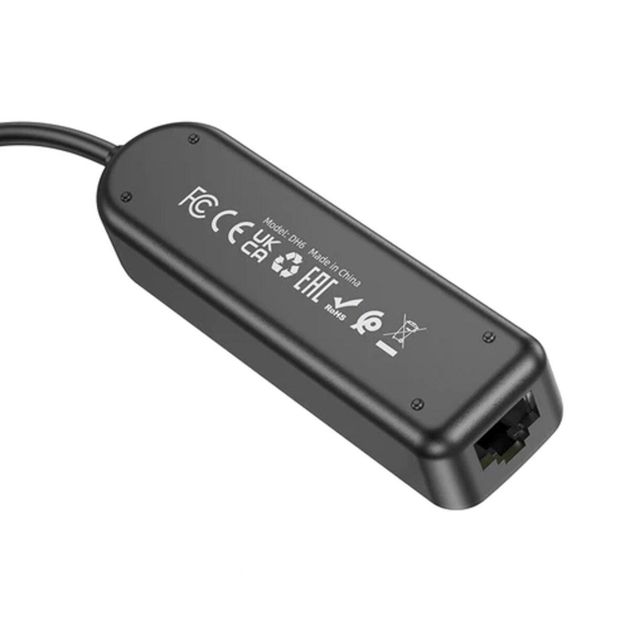 Адаптер Borofone DH6 Erudite 4-in-1 Gigabit Ethernet Adapter (Type-C to USB3.0*3+RJ45) 0.2M Black
