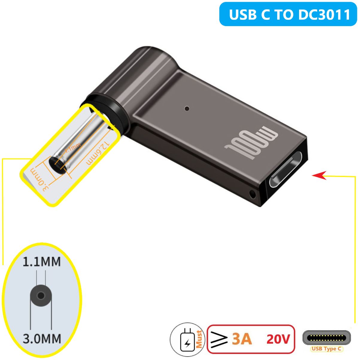 Адаптер PD 100W з роз'ємом USB Type-C надає унікальне рішення для заряджання ноутбуків та іншої техніки з роз'ємом DC 3.0x1.1 мм. Цей адаптер дозволяє використовувати повербанки та зарядні пристрої, що підтримують Power Delivery від 65 Вт і вище, що забезпечує швидку і ефективну підзарядку ваших пристроїв.