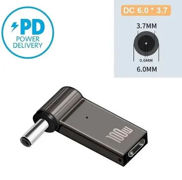 Адаптер PD 100W з роз'ємом USB Type-C надає унікальне рішення для заряджання ноутбуків та іншої техніки з роз'ємом DC 6.0-3.7 мм. Цей адаптер дозволяє використовувати повербанки та зарядні пристрої, що підтримують Power Delivery від 65 Вт і вище, що забезпечує швидку і ефективну підзарядку ваших пристроїв.