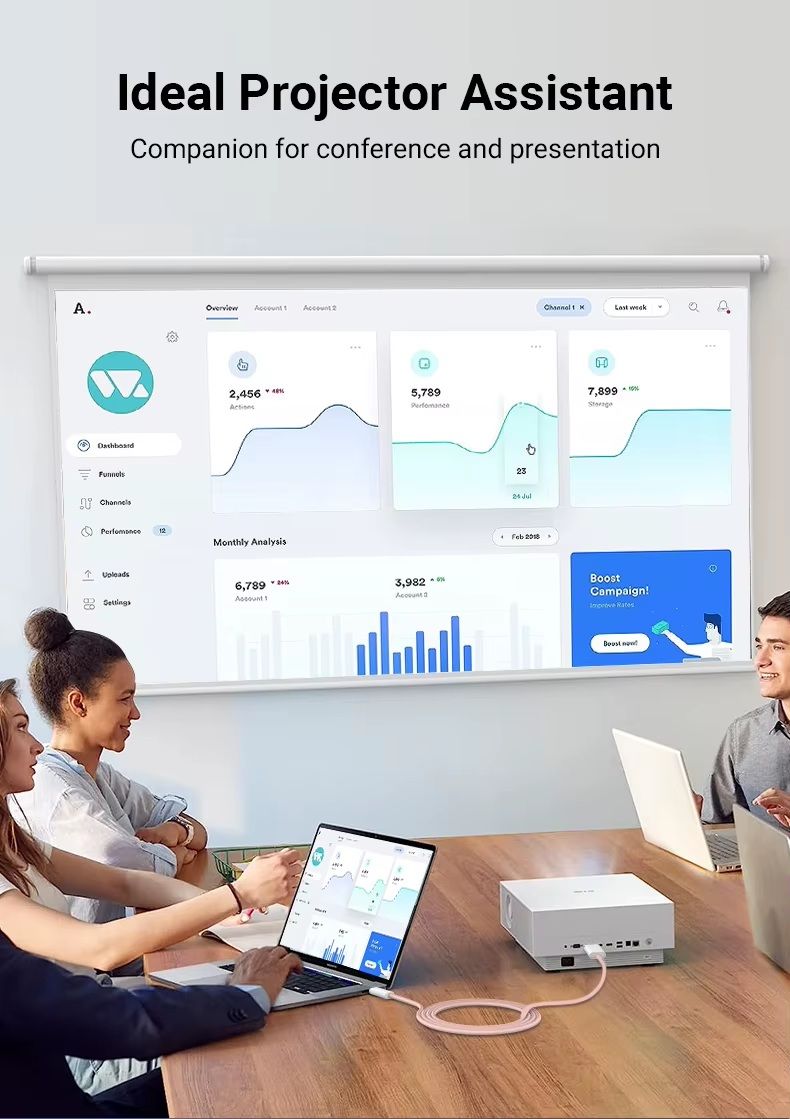- Підтримує підключення до телевізорів, моніторів, проекторів та ноутбуків.