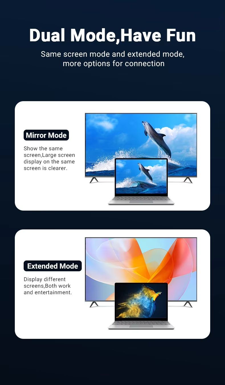 - Режим розширення: незалежне відображення різних екранів для роботи та розваг.