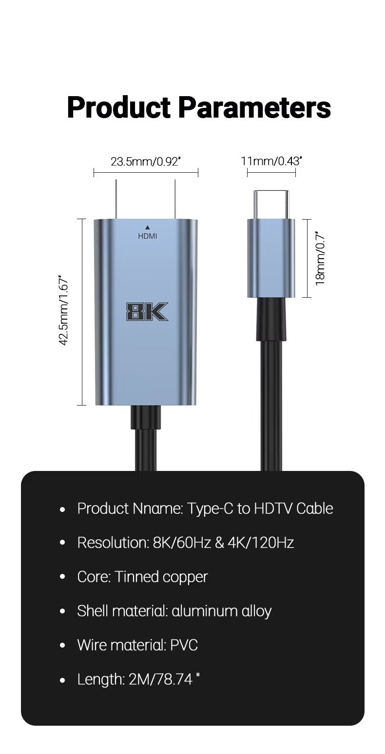 Довжина має зручний розмір 2 метри (78,74 дюйми) для комфортного підключення.