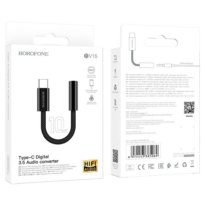 Аудіо конвертер перехідник Type-C to Jack 3.5 (F) 0.1m чорний Borofone BV15 адаптер