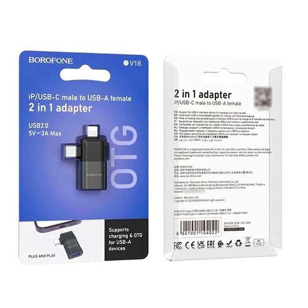Адаптер перехідник Borofone BV18 Lightning/Type-C to USB 2.0 чорний
