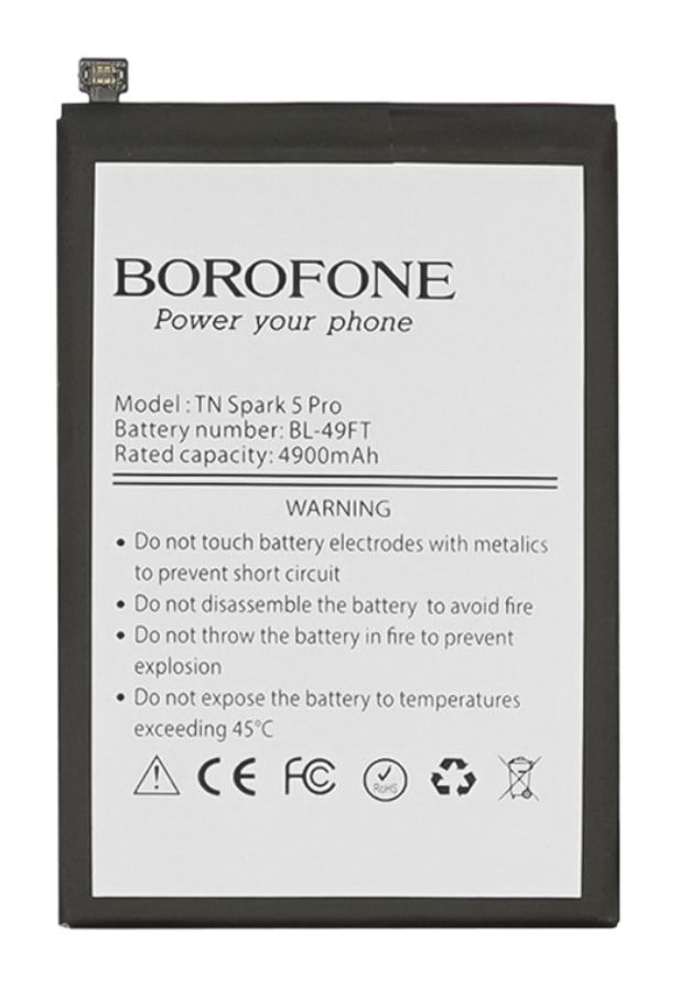 Акумулятор Borofone BL-49FT для TECNO Camon 15 (CD7) / Spark 6 Go (KE5, KE5J) / Spark 7 (KF6n) / Spark 7 Go (KF6m) / Pop 4 (BC2) 4900 mAh